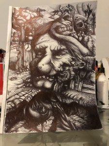 These all creates conflict. With a style in which I might be drawing section by section without planning it’s quite simple, every thought, every pathway will diverge and converge. They will change in fluidity and perspective in the same way as your thoughts change throughout the day, influenced by what is directly happening.
